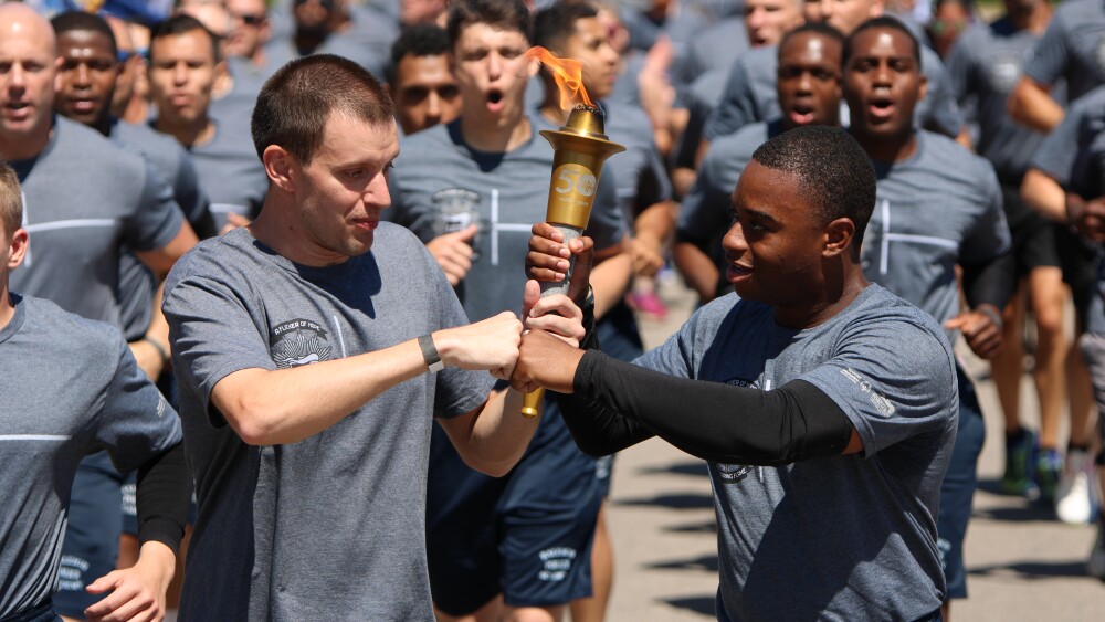 Law enforcement officers, known as the Guardians of the Flame, carry the Special Olympics Torch, symbolizing the Flame of Hope, through communities to the Opening Ceremonies of various Special Olympics events.